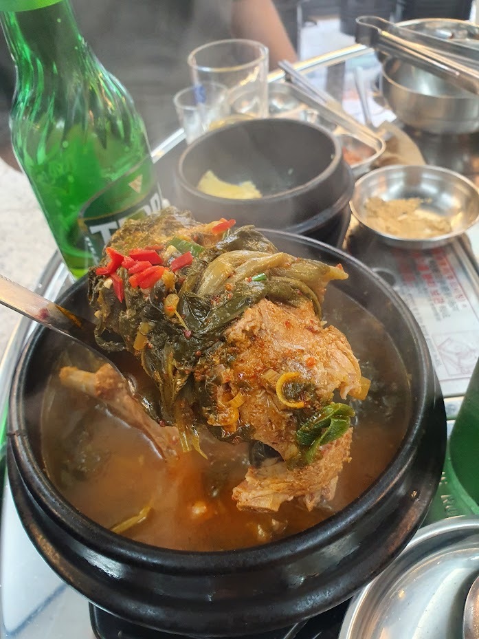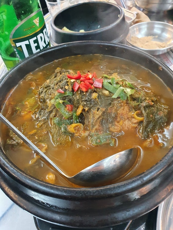 우거지 해장국 같은 맛이지만 등뼈가 통째로 들어간 감자탕 느낌